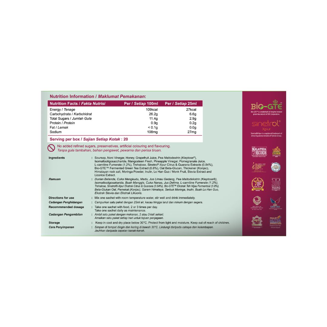 For optimum result, take 1 sachet before meal or prior to exercise, 2 or 3 times per day. Take one sachet daily as maintenance.